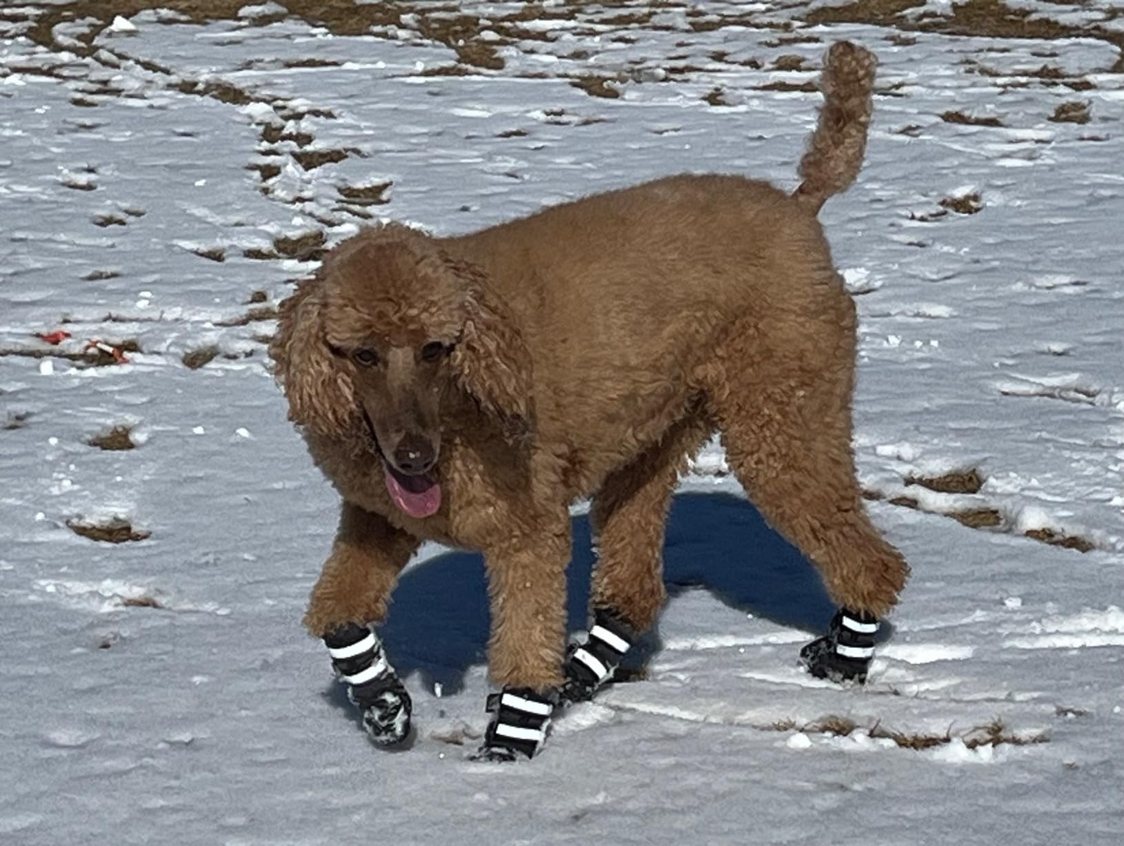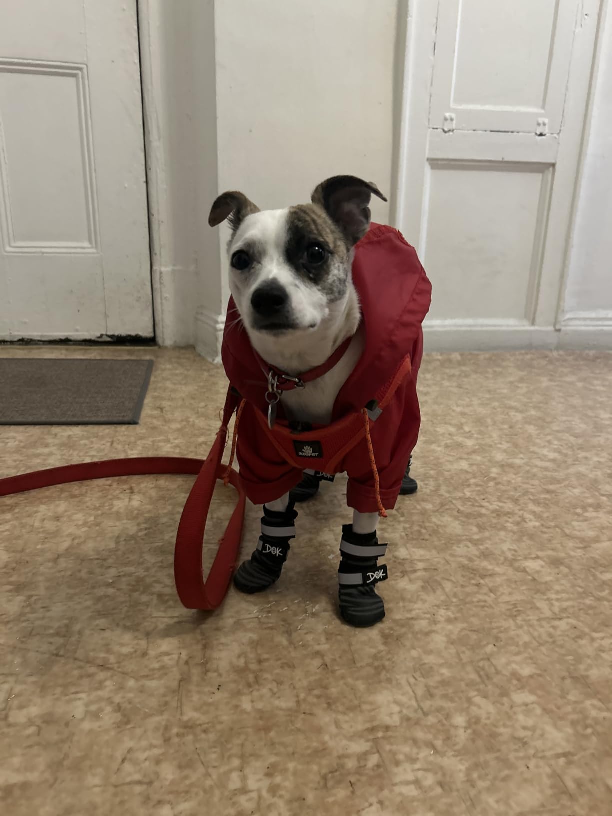 The Outdoor TigerToes are water resistant but NOT 100% waterproof. However, this is intentional. Think of them like a wetsuit for your dog’s paws!